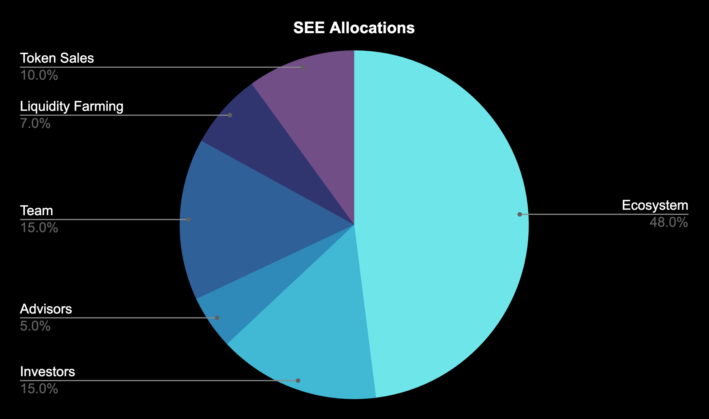 The token issuance will be allocated to the ecosystem, investors, advisors, team, liquidity farming and token sales with different proportions: