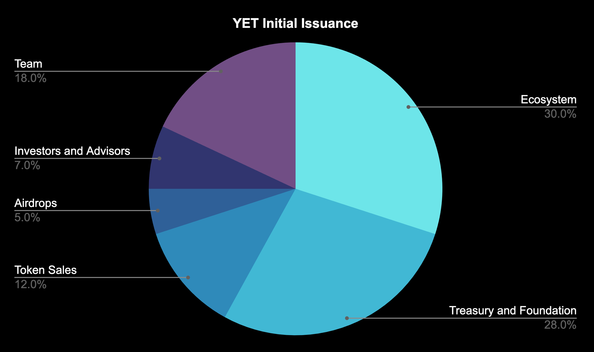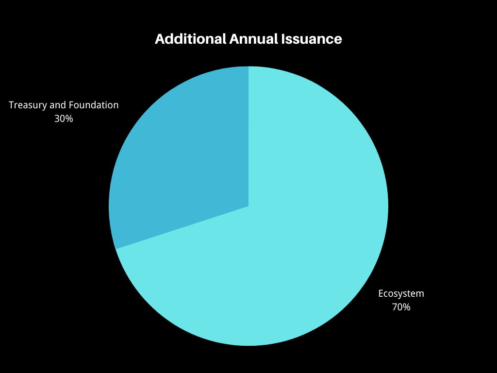 The initial issuance will be allocated to the ecosystem, treasury and foundation, token sales, airdrops, investors, and team with different proportions: